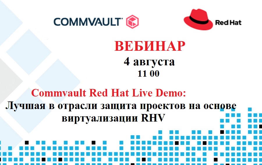 Компания КвадроСофт приглашает принять участие в продолжении серии совместных вебинаров Commvault и Red Hat: Commvault Red Hat Live Demo: Лучшая в отрасли защита проектов на основе виртуализации RHV.