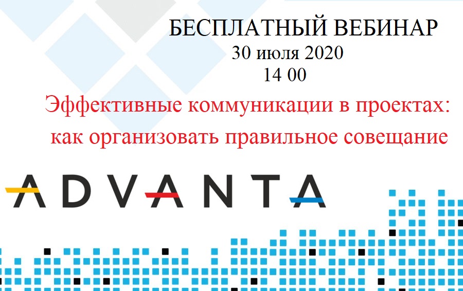 30 июля в 14.00 (мск) пройдет бесплатный вебинар от ADVANTA, где вы узнаете, как просто и быстро организовать эффективные коммуникации с проектной командой.