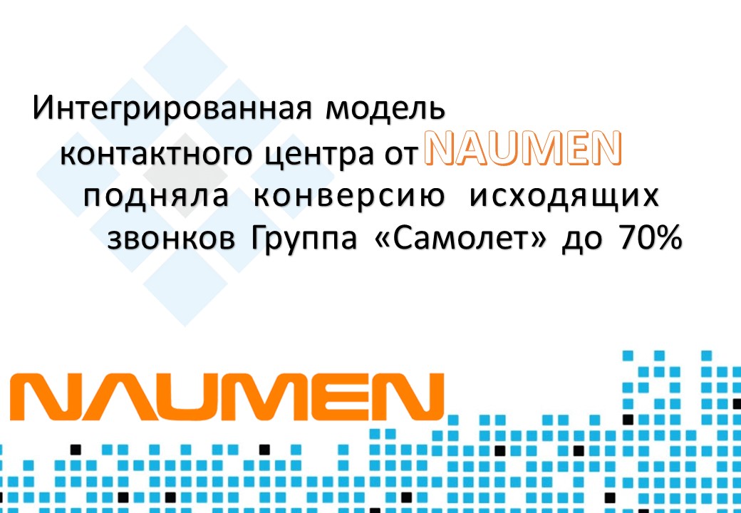 Группа «Самолет», один из крупнейших федеральных девелоперов, и компания-разработчик NAUMEN завершили проект модернизации контактного центра на базе платформы Naumen Contact Center. В результате автоматизации работы колл-центра конверсия исходящих звонков возросла до 70%, а доля потерянных входящих вызовов сведена к нулю.