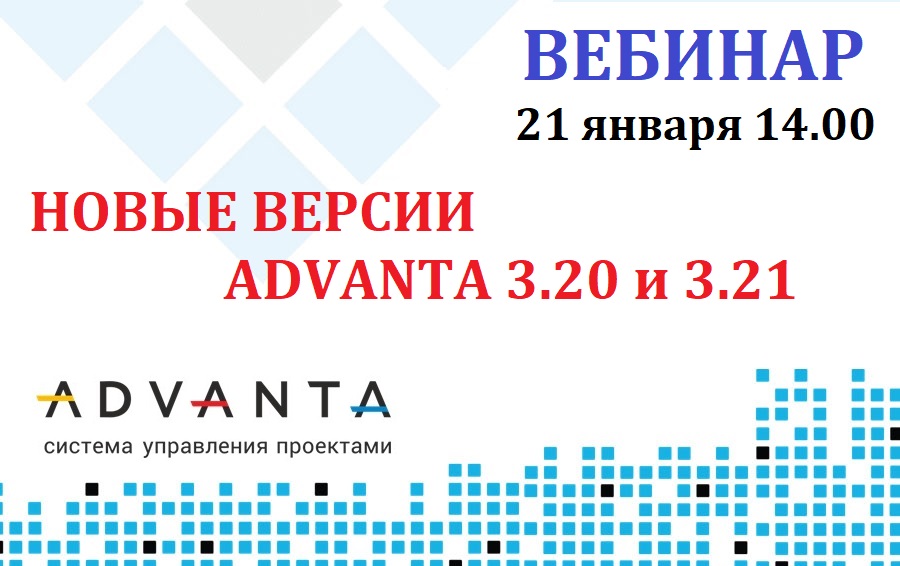 Компания КвадроСофт приглашает принять участие в бесплатном вебинаре ADVANTA "НОВЫЕ ВЕРСИИ ADVANTA 3.20 и 3.21". Автоматизация процессов с помощью триггеров, конструктор печатных форм и другие возможности для руководителей проектов и РМО